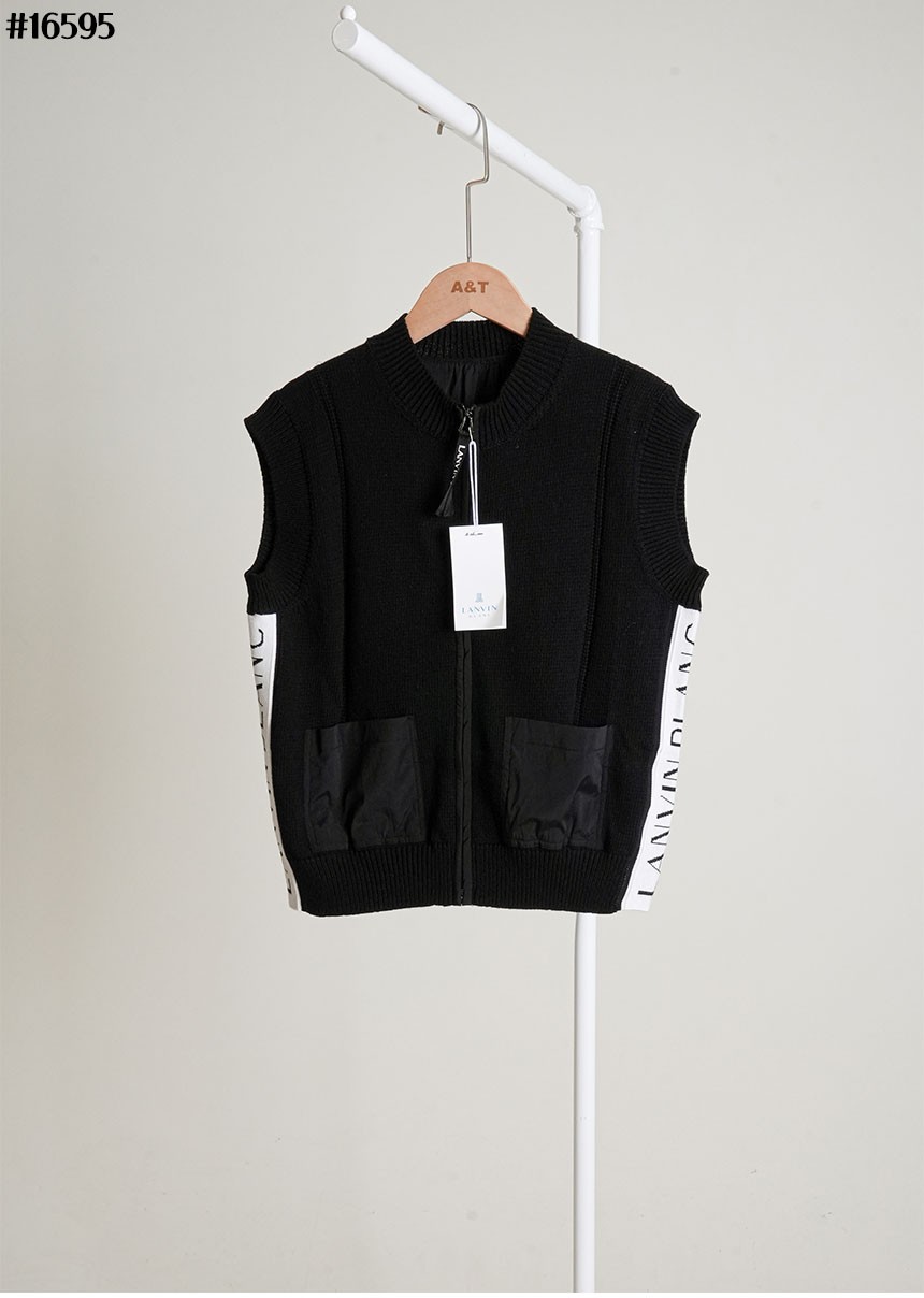 [LANVIN BLANC] 랑방블랑 골프웨어 로고 텍스처 블록 집업 니트 베스트