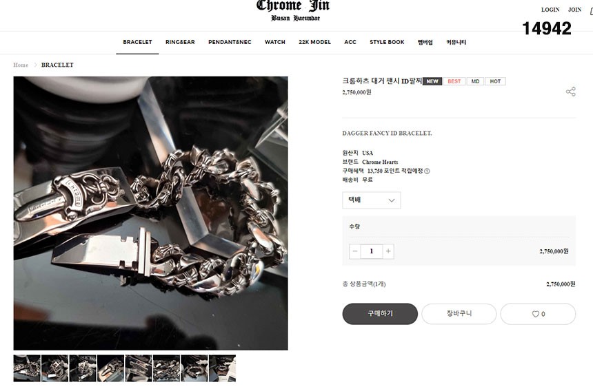 [Chrome Herts] 크롬하츠 대거 ID 팬시 팔찌 라지