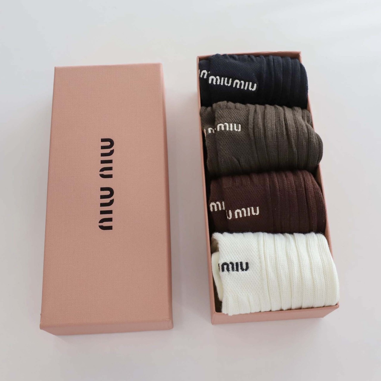 미우미우 [ MIU ] 수입 링클 코튼 로고 중목 양말세트