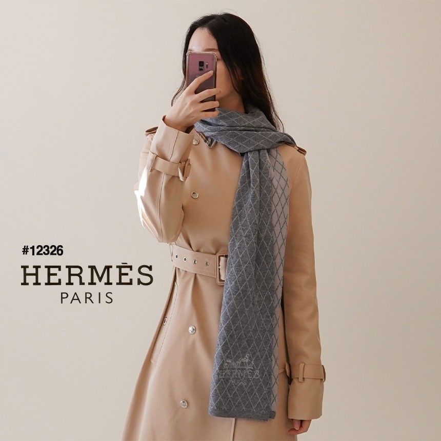 [HERMES] 에르메스 남여공용 사각패턴 캐시미어 머플러