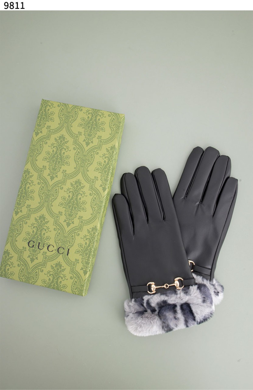 구찌 [GUCCI] 레오파드 퍼 GG 인터로킹 레더 장갑
