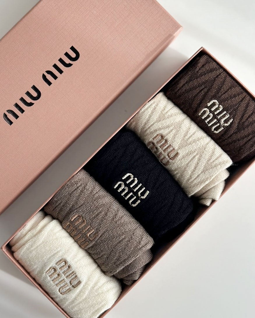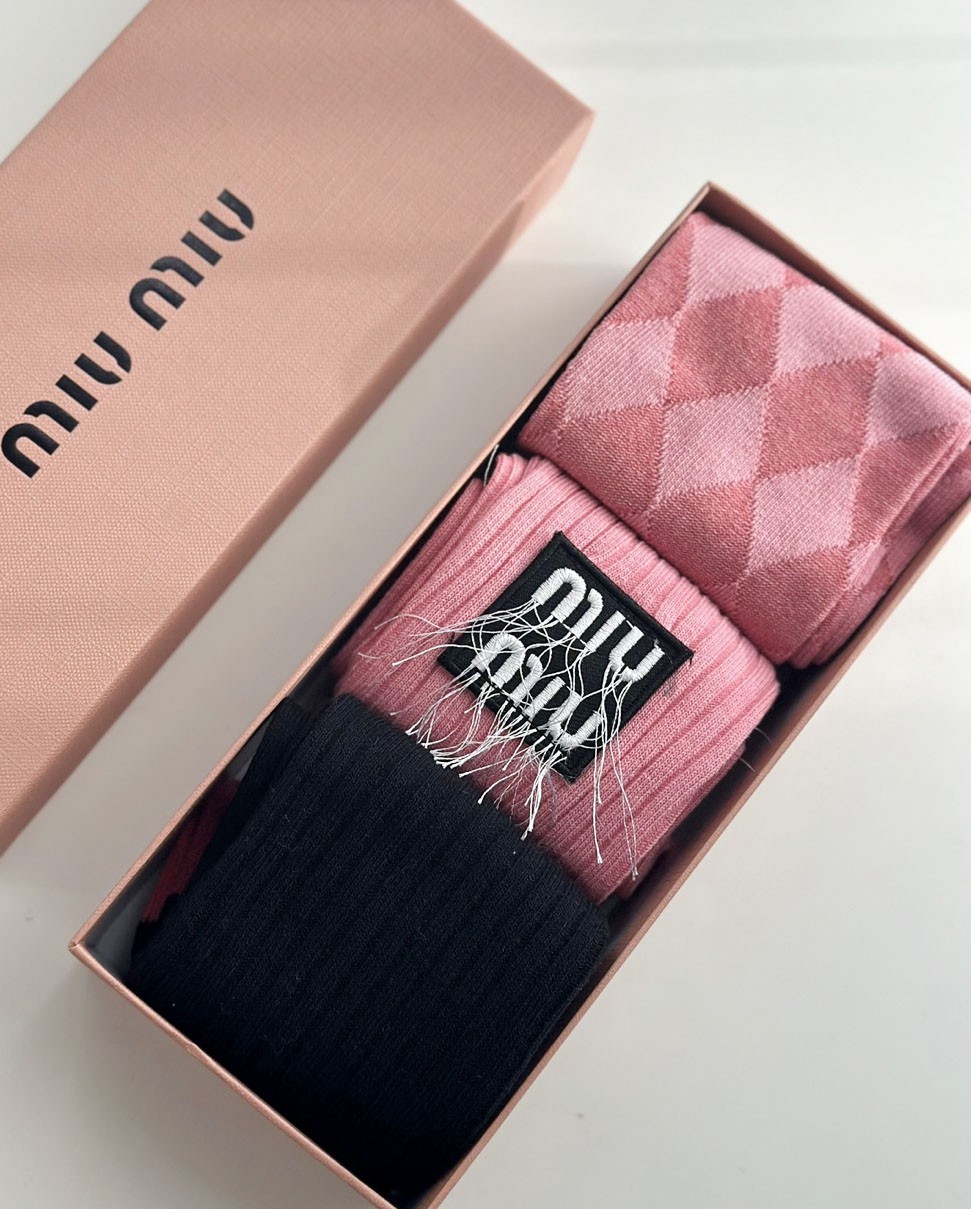 미우미우 [ MIU ] 수입 케이블 니트 로고 중목 양말세트