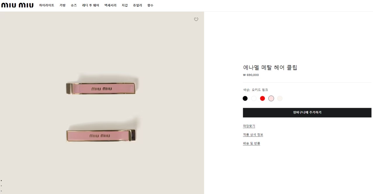 미X미우 에나멜 메탈 헤어 클립 2개 세트 Miu Miu Enameled Metal Hair Clip