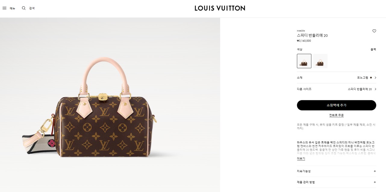 루X비통 스피디 반둘리에 20