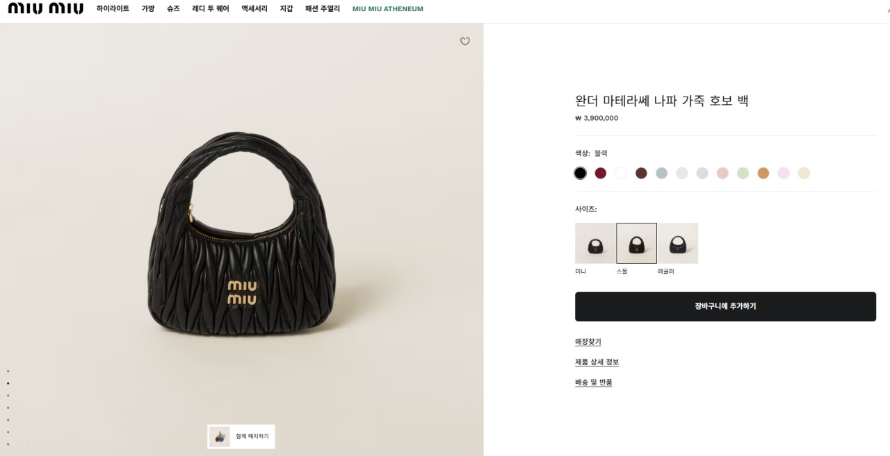 미X미우 마테라쎄 나파 레더 미니 호보백