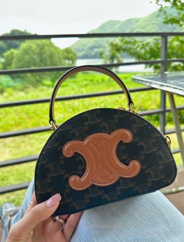 셀린느 [ C*LINE ] 수입 트리오페 캔버스 퀴르 하프 문 케이스 토트 숄더백