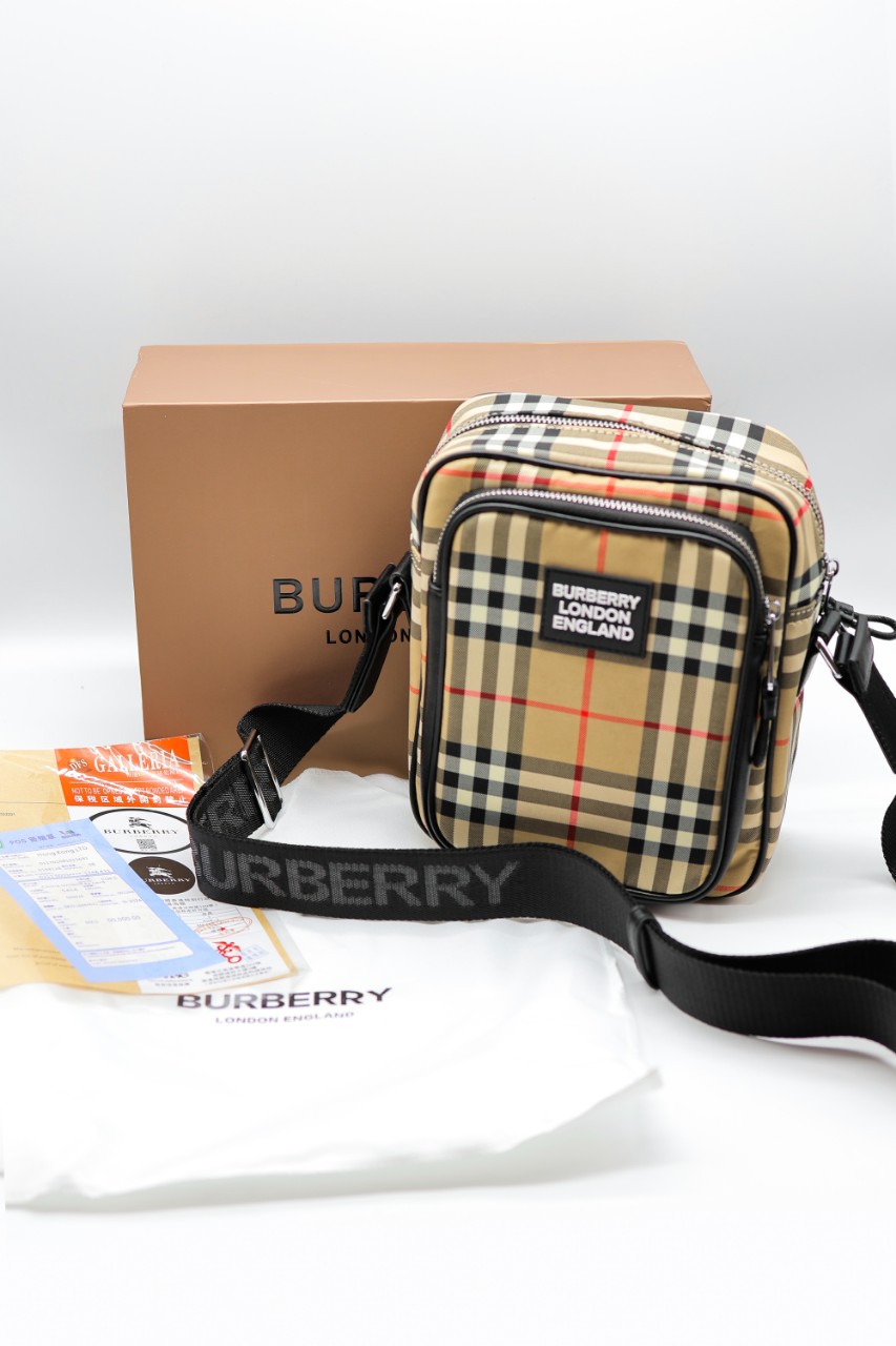버버리 24ss 아카이브 베이지 빈티지 체크 레더 크로스 공용