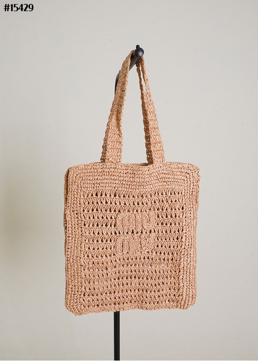 [MIUMIU] 미우미우 라피아 패브릭 토트 백
