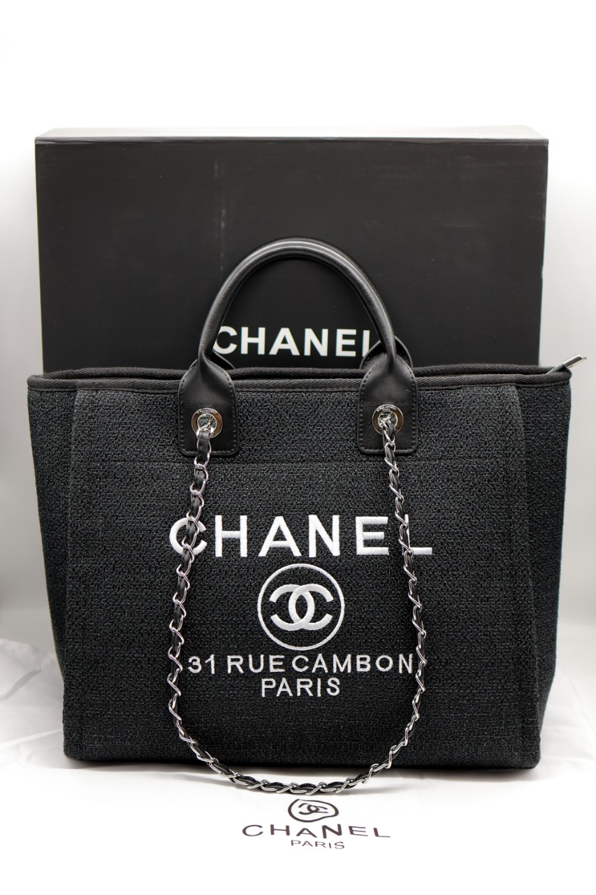 [CHANEL] 샤넬 스트라이프 데님 토트 백
