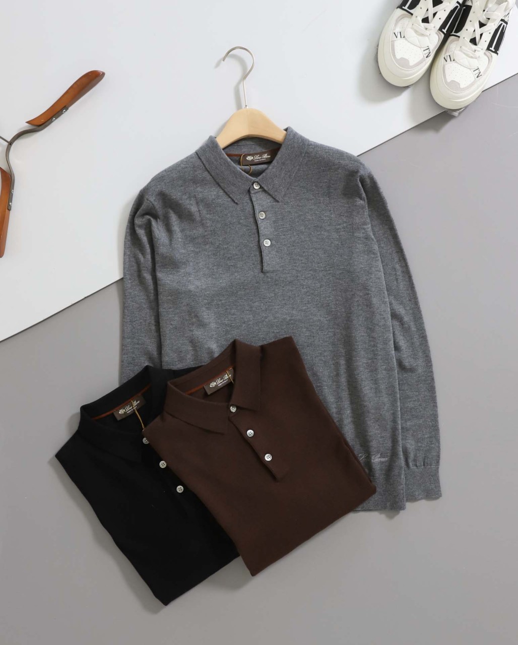 로로피아나 [ LORO ] 수입 버튼 플래킷 카라 니트