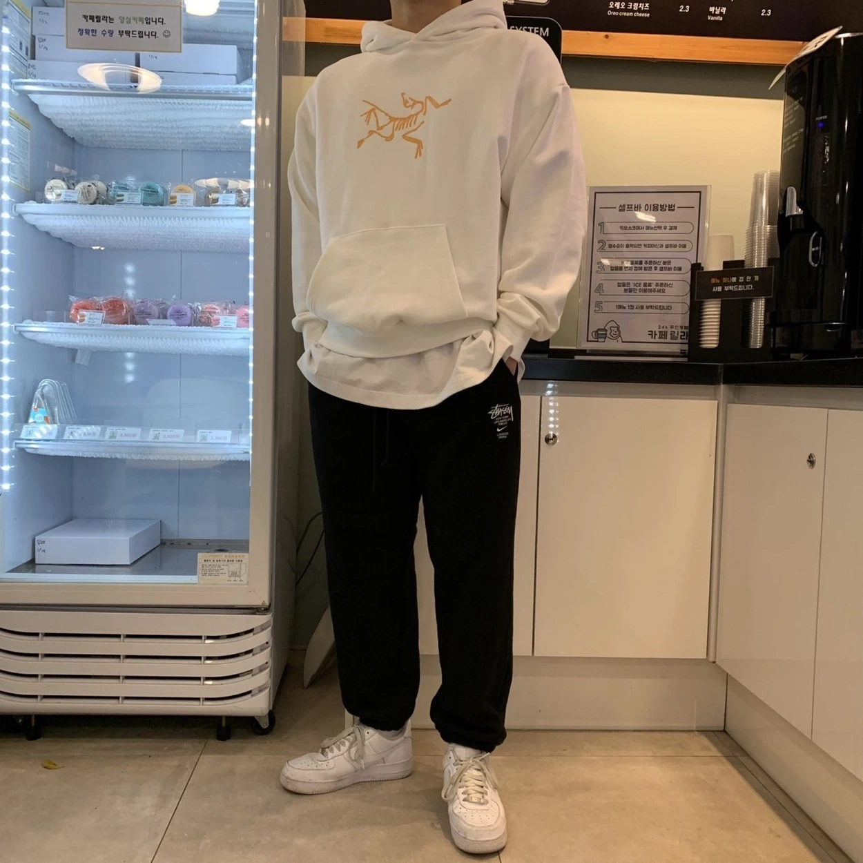 [MONCLER] 몽클레어 전면 그래픽로고 후드 맨투맨 조거셋