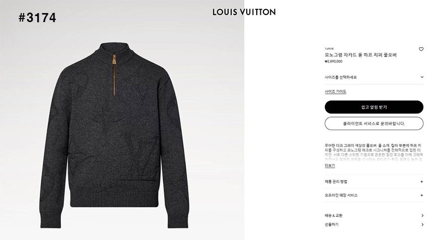 [LOUIS VUITTON] 루이비통 모노그램 반집업 니트 스웨터