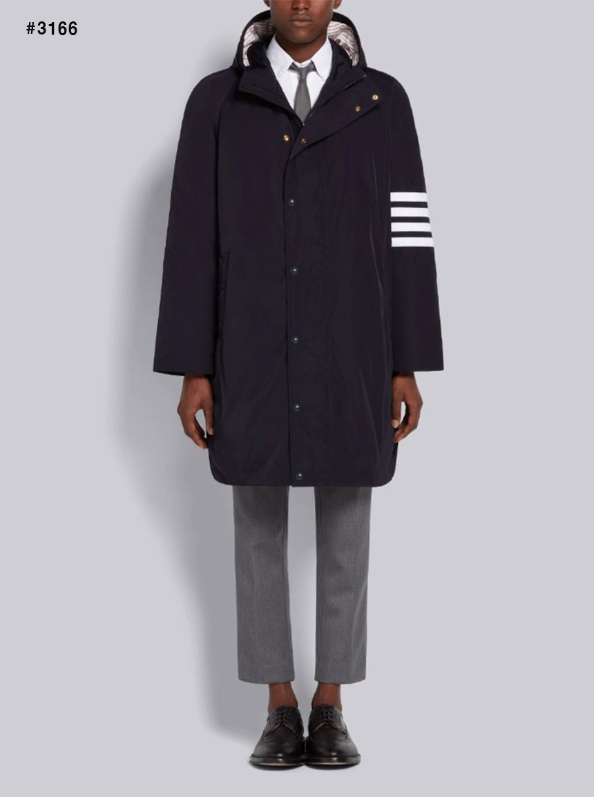[THOM BROWNE] 톰브라운 사선 4바 풋볼 사이드라인 후드 롱 패딩 점퍼
