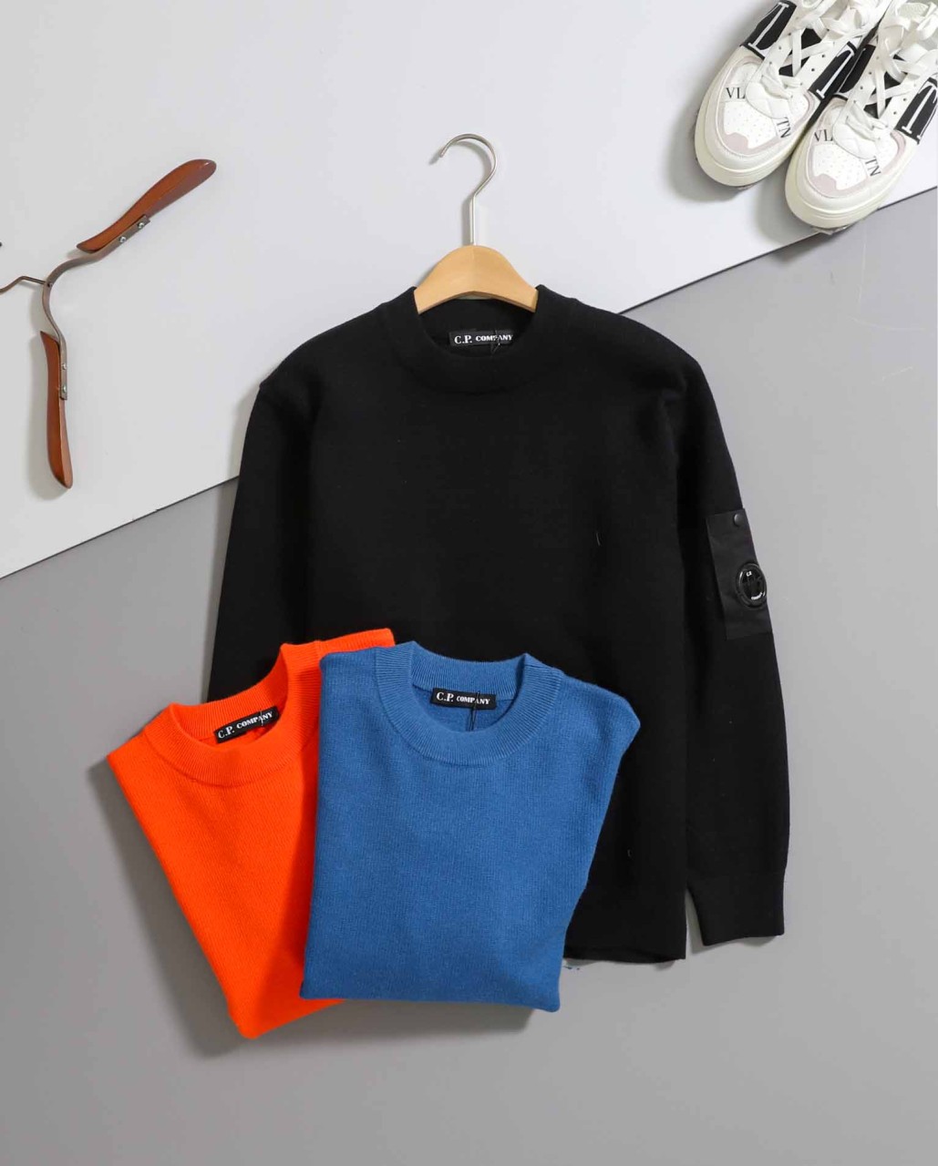 시피컴퍼니 [ C.P ] 로고 패치 크루넥 코튼 니트 스웨터