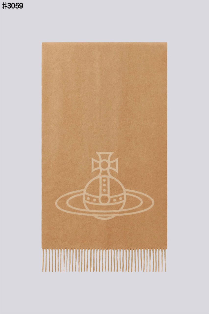 [Vivienne Westwood] 비비안 웨스트우드 투 사이드 싱글 오브 울 자카드 태슬 머플러