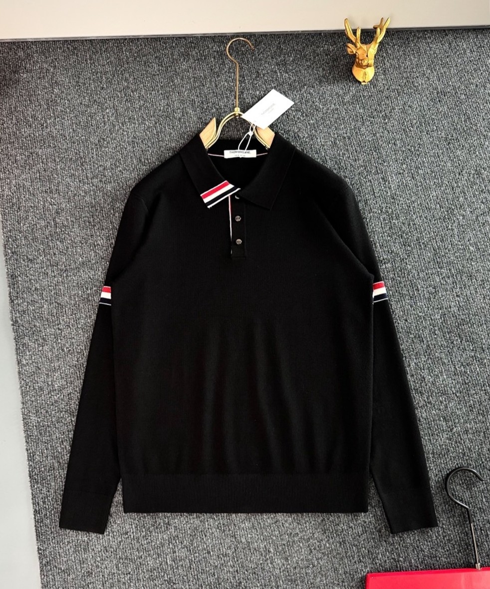 톰브라운 암밴드 넥삼선 양모 카라티