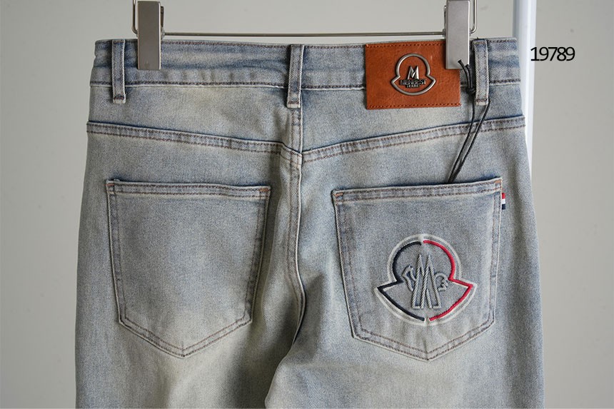 [MONCLER] 몽클레어 레더 스틸로고 로고자수 데님진