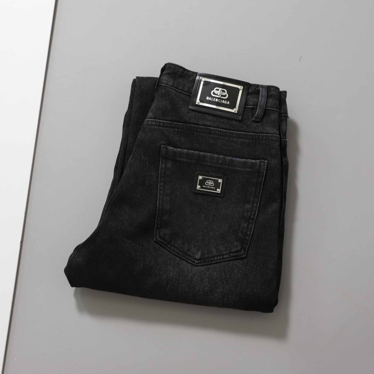 발렌시아가 [ B*lenciaga ] 미드 라이즈 스트레이트 기모 블랙 데님 팬츠