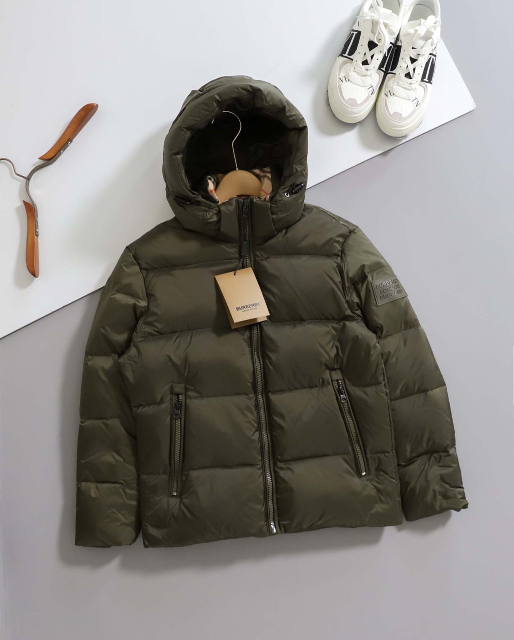 버버리 [ B*RBERRY ] 수입 올리브그린 후드 다운 자켓