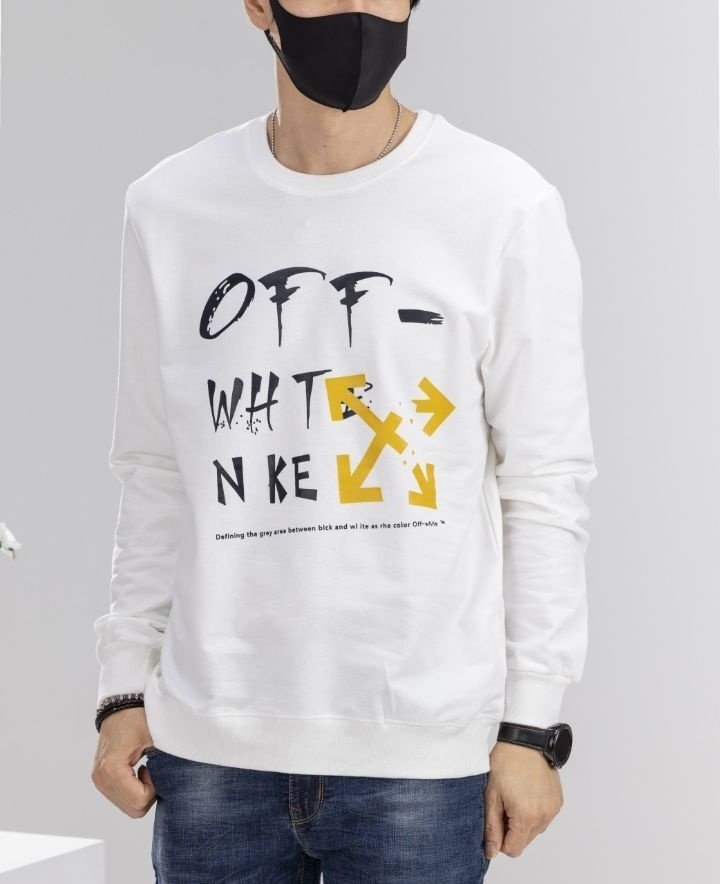 오프화이트 화이트 빈티지 컬러나염 에어탑 맨투맨