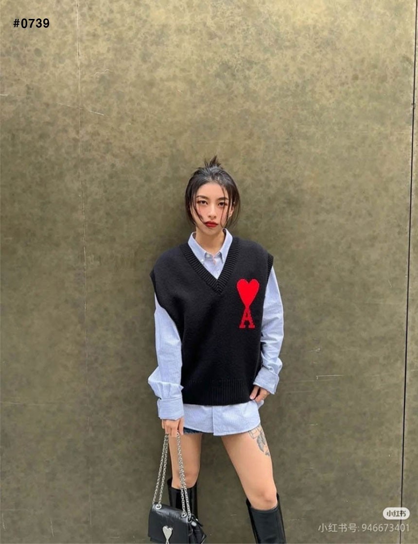 [AMI] 아미 빅하트 로고 슬리브리스 스웨터 레드 하트