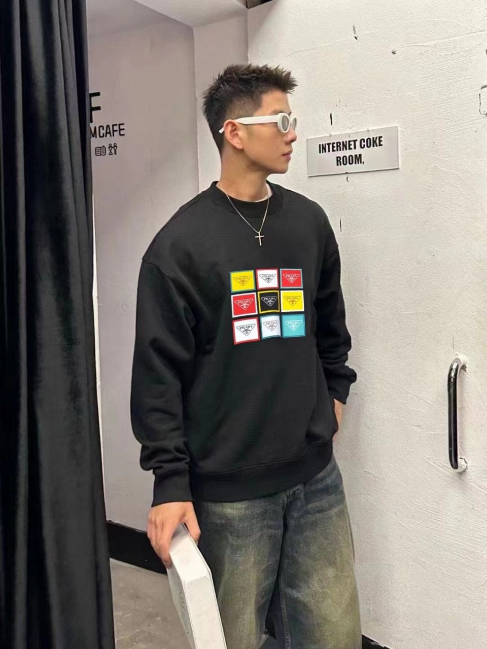 프라다 사선 폰트로고 맨투맨 티셔츠