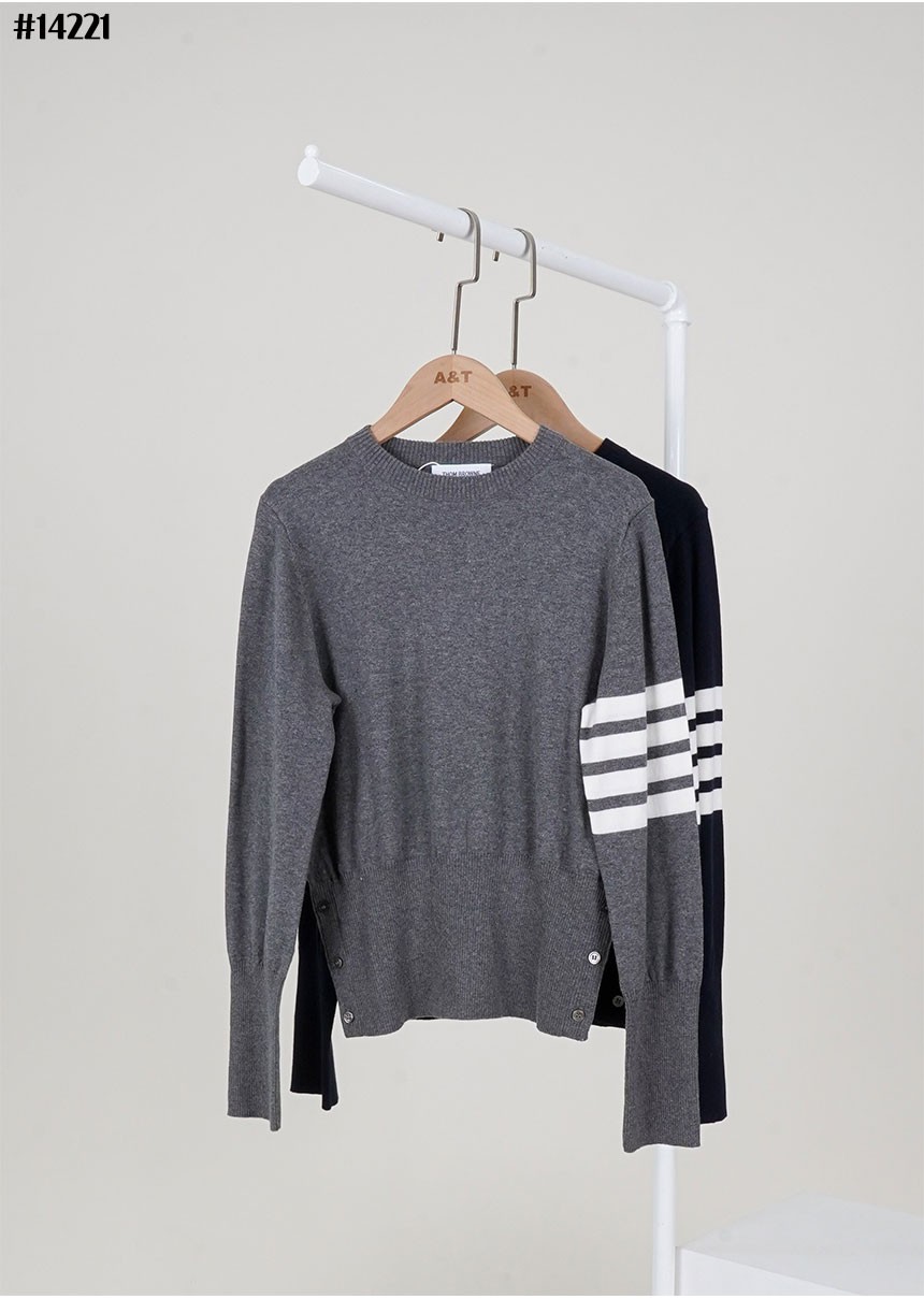 [THOM BROWNE] 톰브라운 코튼 크레이프 밀라노 4-바 크루넥 스웨터