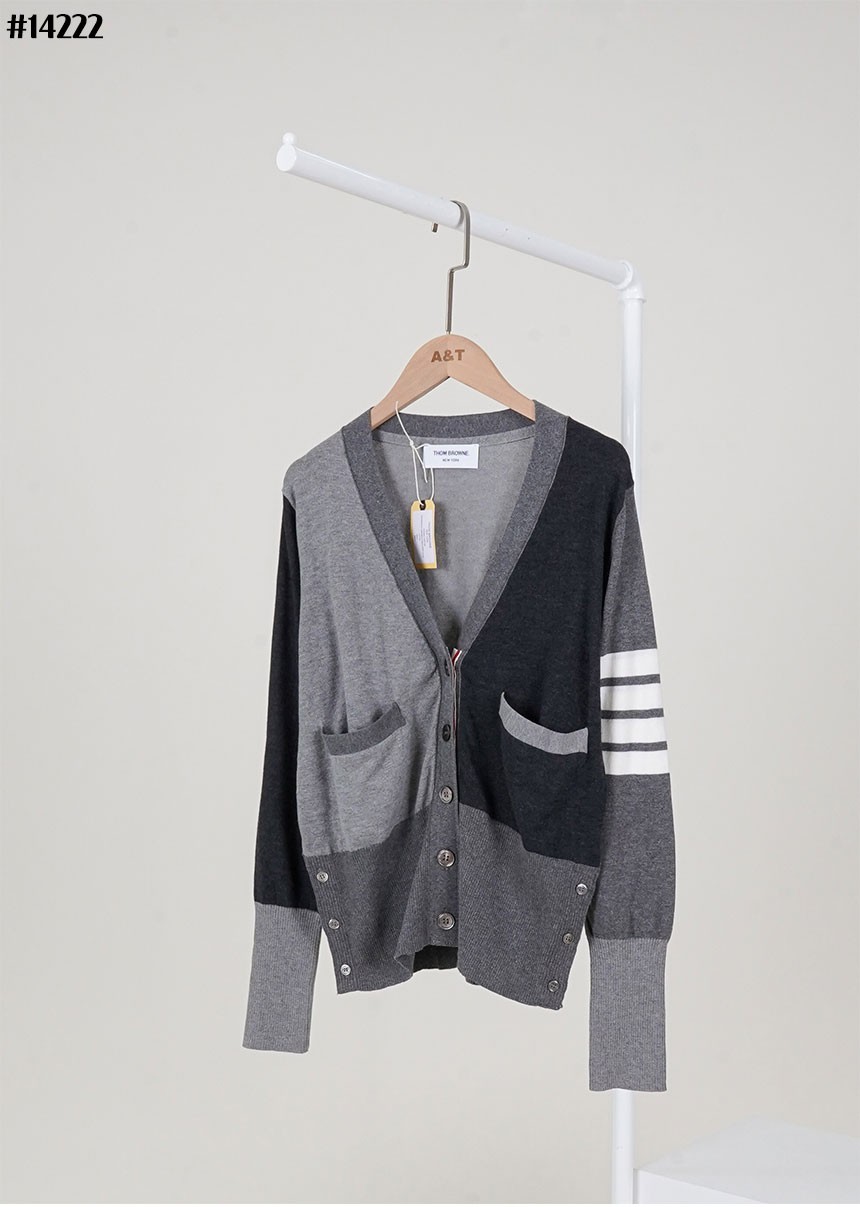 [THOM BROWNE] 톰브라운 펀믹스 코튼 크레이프 4-바 브이넥 가디건