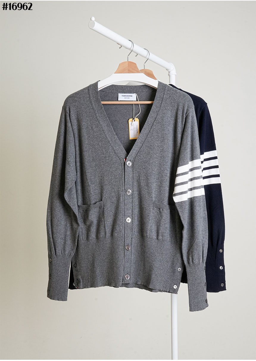 [THOM BROWNE] 톰브라운 코튼 크레이프 4-바 브이넥 가디건