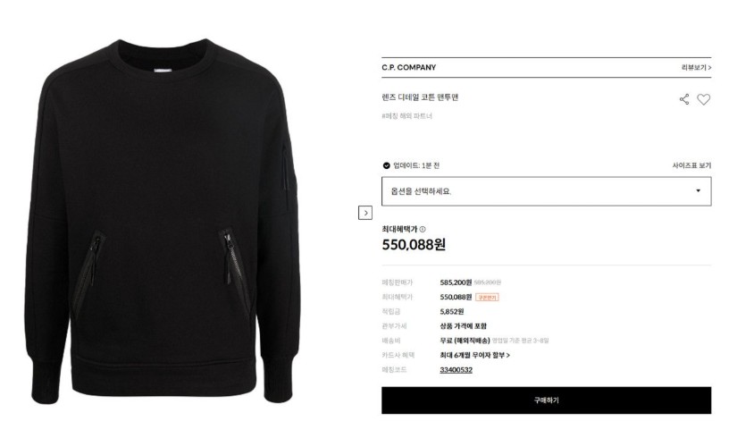 CP컴퍼니 렌즈 디테일 지퍼 맨투맨