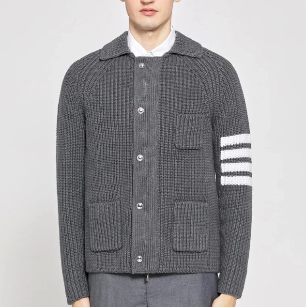 톰브라운 사선 울 카라 니트