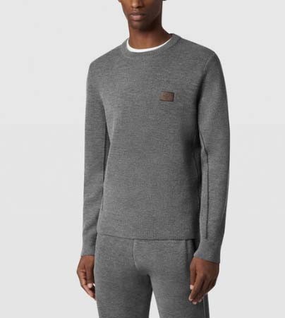 벨루티 [ B*RLUTI ] 수입 레더 디테일 쉐도우 크루넥 니트