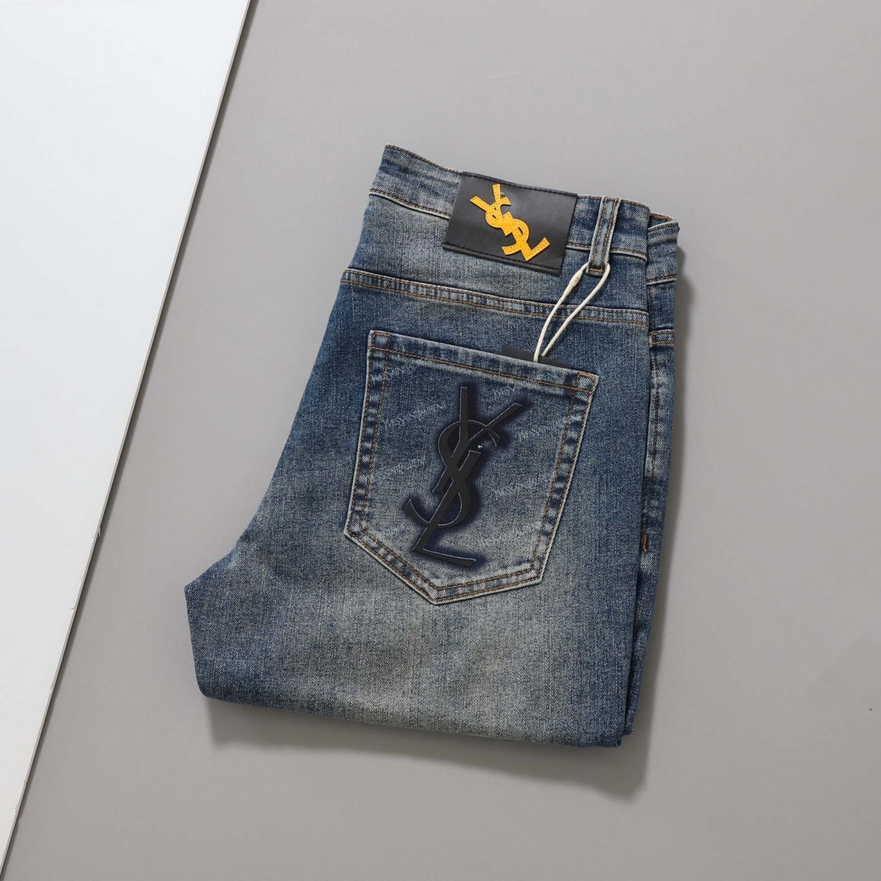 생로랑 [ Y.S.L ] 수입 백포켓 YSL 로고 프린팅 데님 팬츠