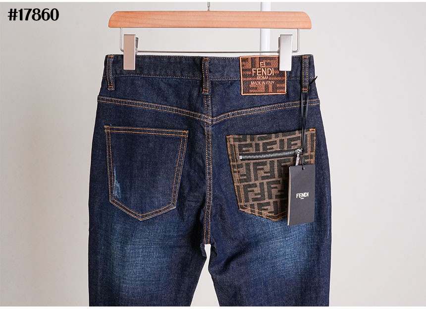 [FENDI] 펜디 FF 자카드 포켓 슬림핏 데님 팬츠