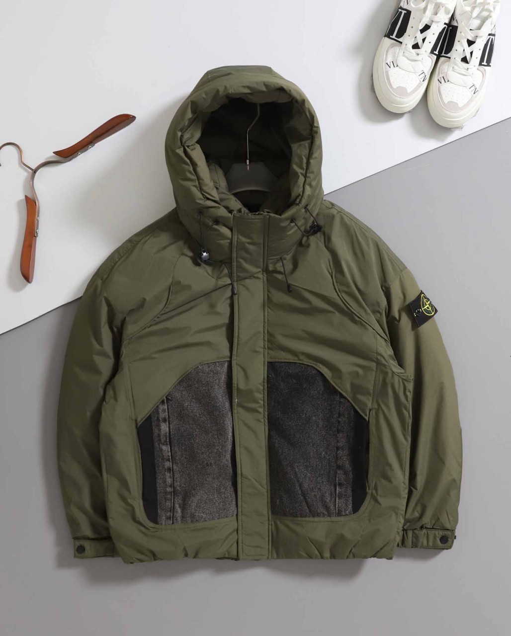 스톤아일랜드 [ S.T ] 수입 나일론메탈 TC 에코닐 다운 자켓 -카키-