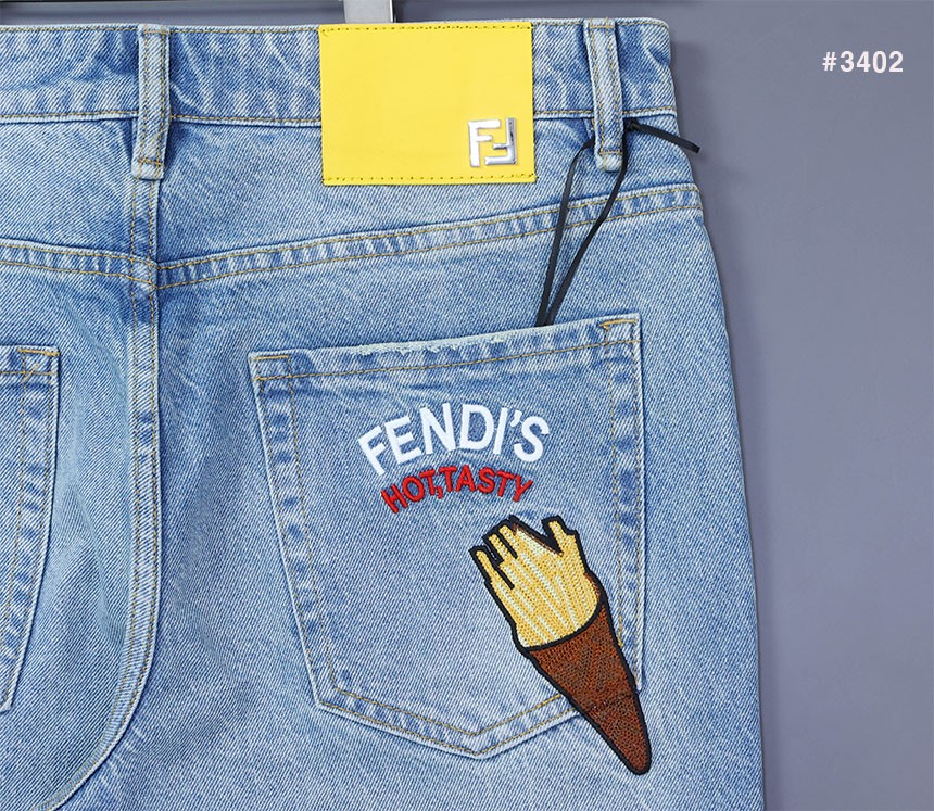 [FENDI] 팬디 이니셜 자수로고 워싱 데님 팬츠