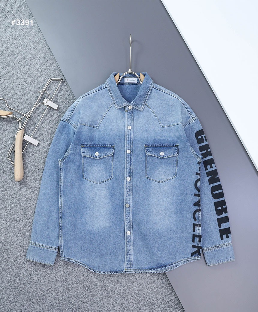 [MONCLER] 몽클레어 그레노블 레터링 로고 워싱 데님 셔츠
