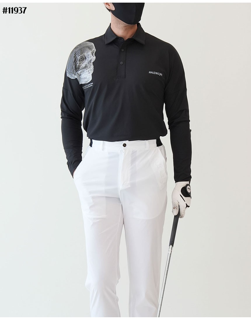 [AMAZING CRE] 어메이징크리 남성 에어로쉴드 스컬 긴팔 카라 티셔츠