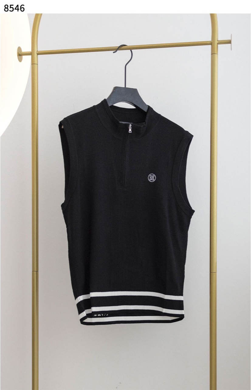[G/FORE] 지포어 블랙 앤 화이트 퍼플리스 패턴 투웨이 다운 베스트