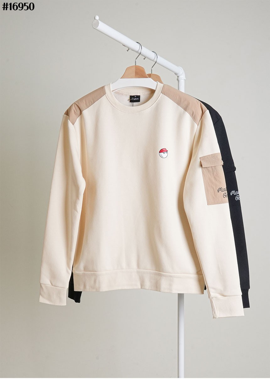 어메이징크리 [AMAZINGCRE] 남성 배색 팔 포켓 맨투맨 티셔츠