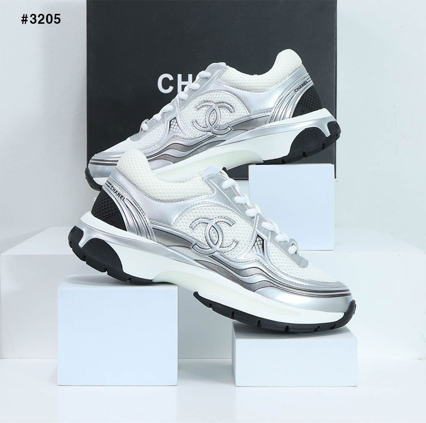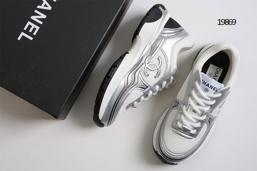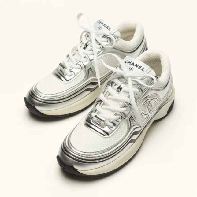 [CHANEL] 샤넬 패브릭 라미네이티드 화이트/실버 스니커즈