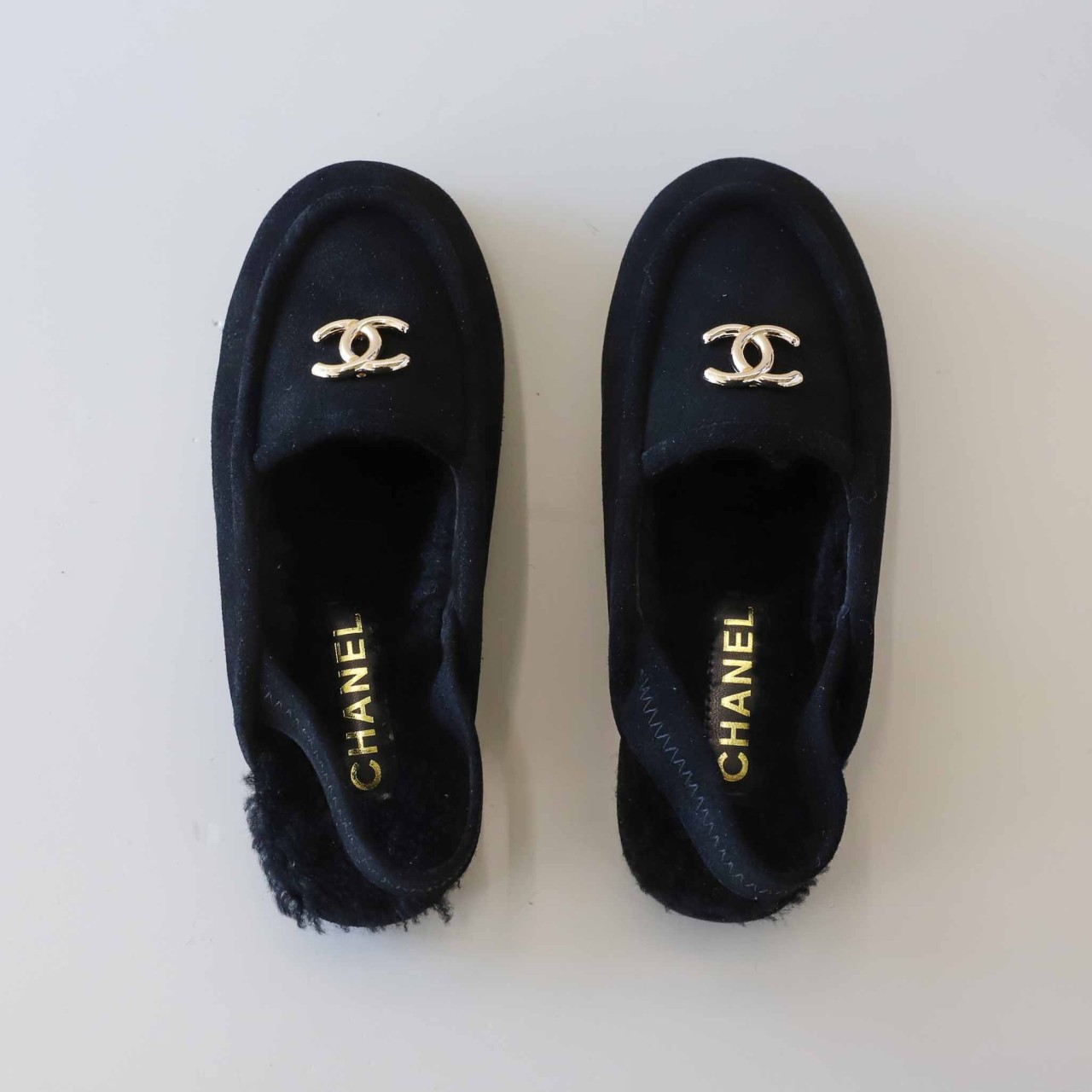 샤넬 [ C*ANEL ] 수입 스웨이드 시어링 슬리퍼 뮬