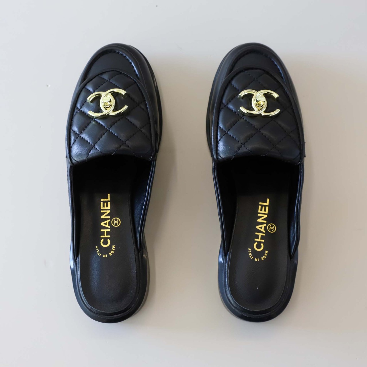 샤넬 [ C*ANEL ] 수입 CC 로고 퀼팅 턴락 뮬 클로그 슬리퍼