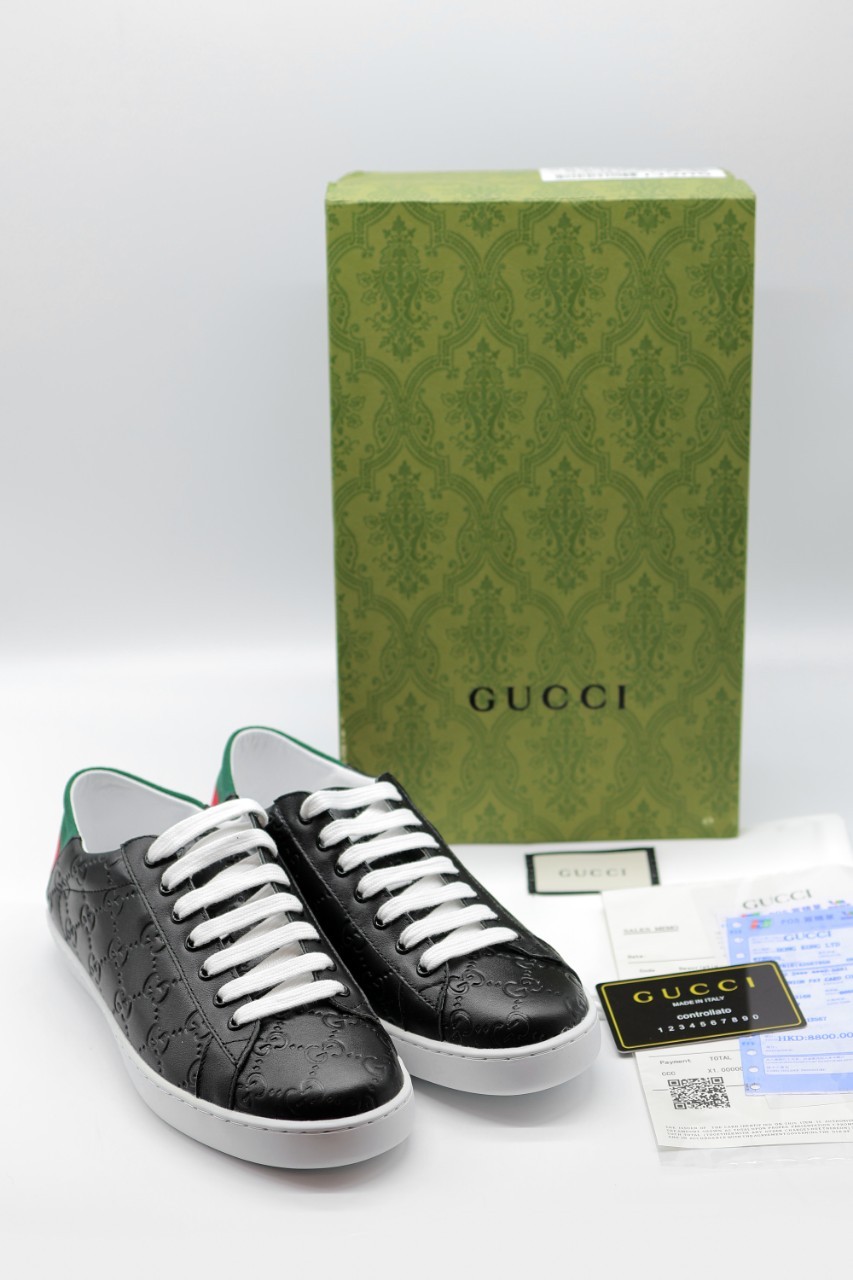 구찌 블랙 엠보 띠로고 스니커즈