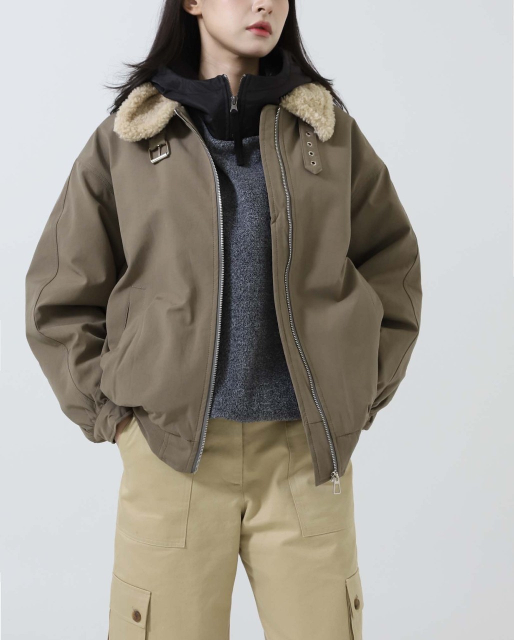 몽클레어 [ Mc.몽 ] 수입 후드 패딩 겉기모 플리츠 집업