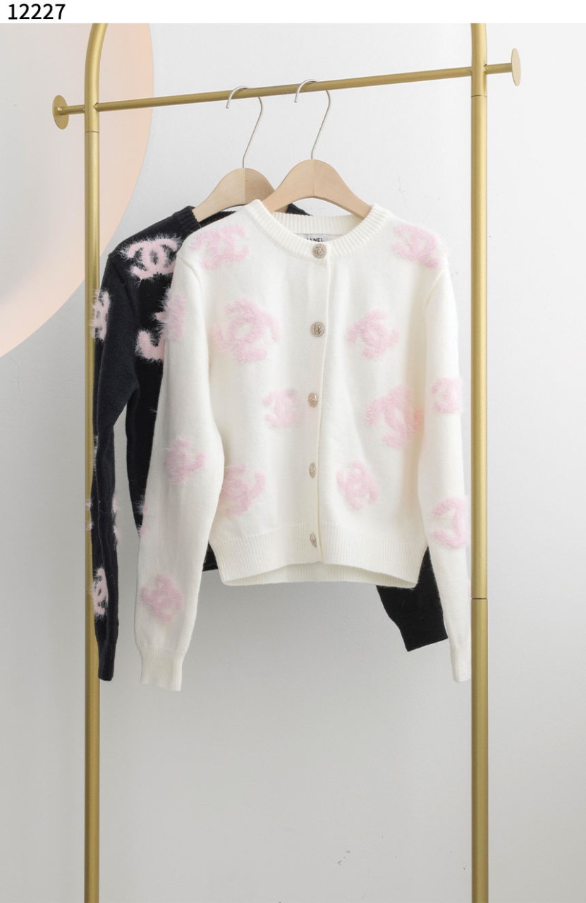 샤넬 [Chanel] 핑크 로고 라운드 스웨터