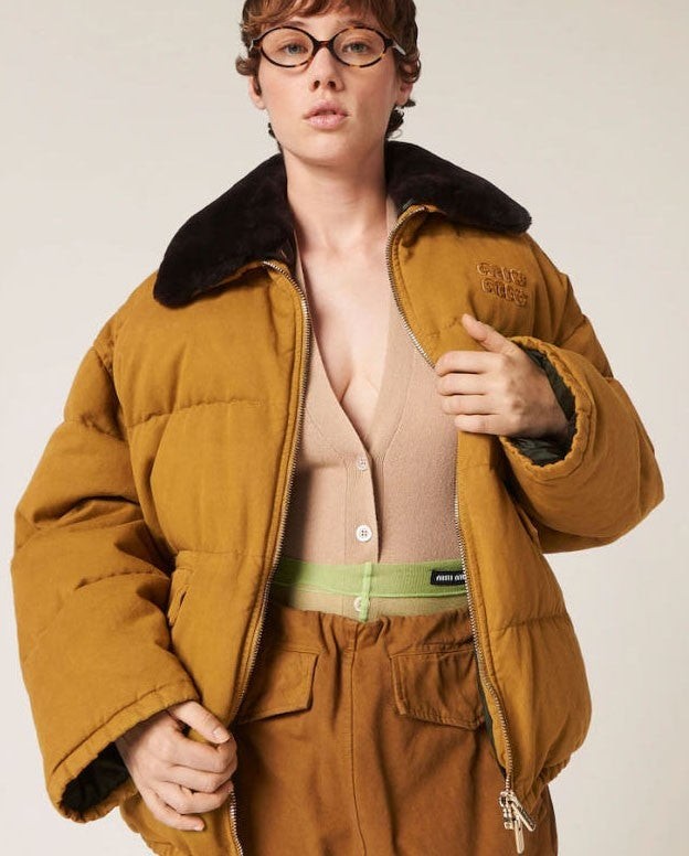 미우미우 [ MIU ] 수입 로고 자수 개버딘 패딩 다운자켓