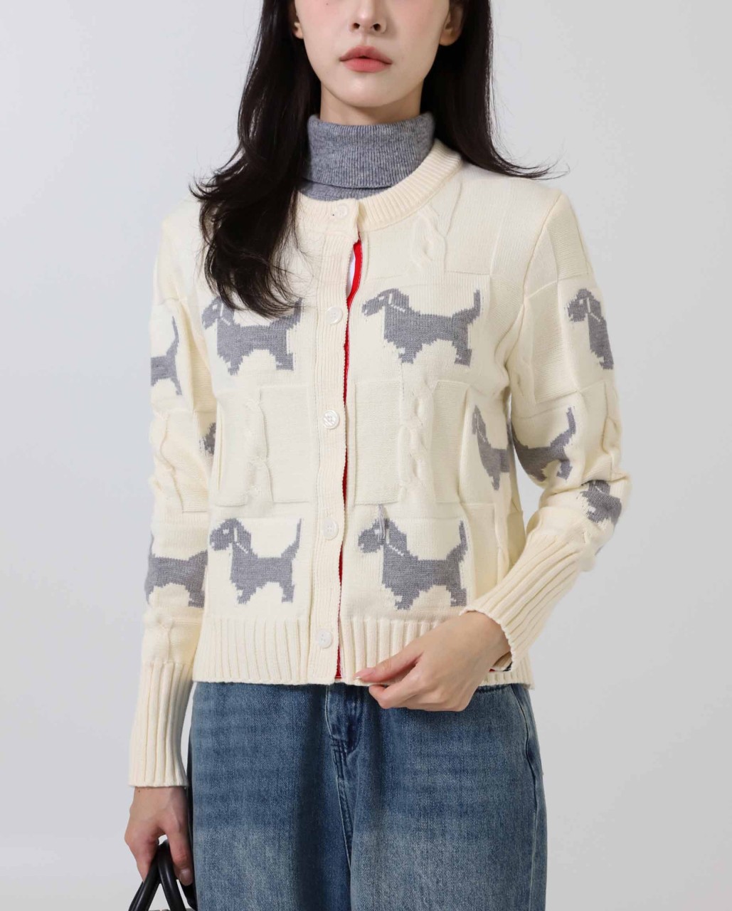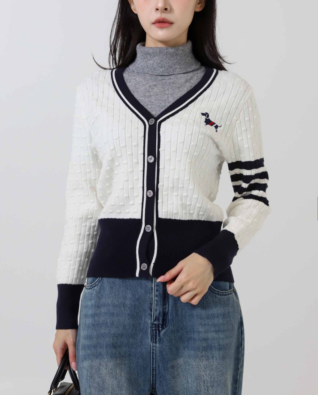 톰브라운 [ THOM ] 강아지 4-바 브이 니트 가디건