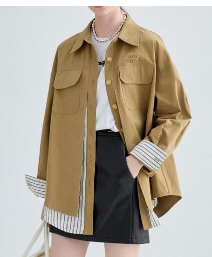 미우미우 [ miu ] 수입 레이어드 카라넥 스트라이프 셔츠&자켓