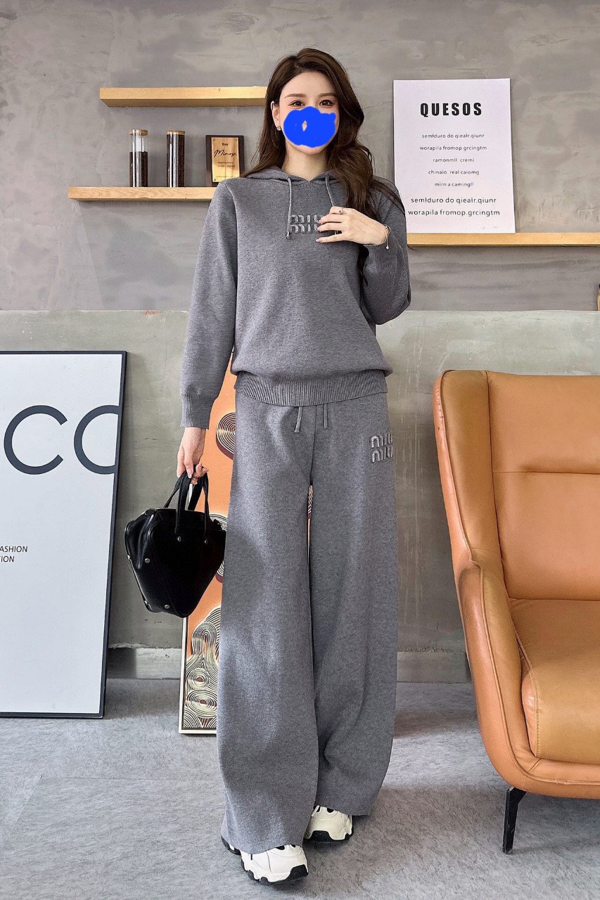 세트 미우미우 [MIU MIU] 수급 미우미우 여성.후드니트 & 와이드팬츠 세트